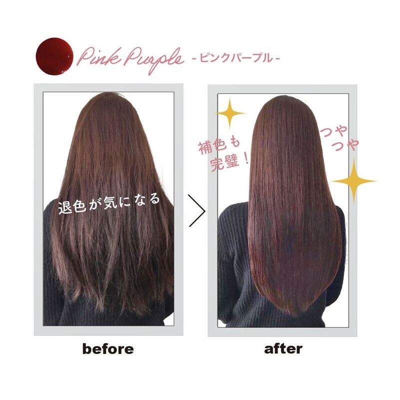 2種類の染料を重ねることで、色素が髪をコーティング。くすみをなくし透明感のあるカラーへ。