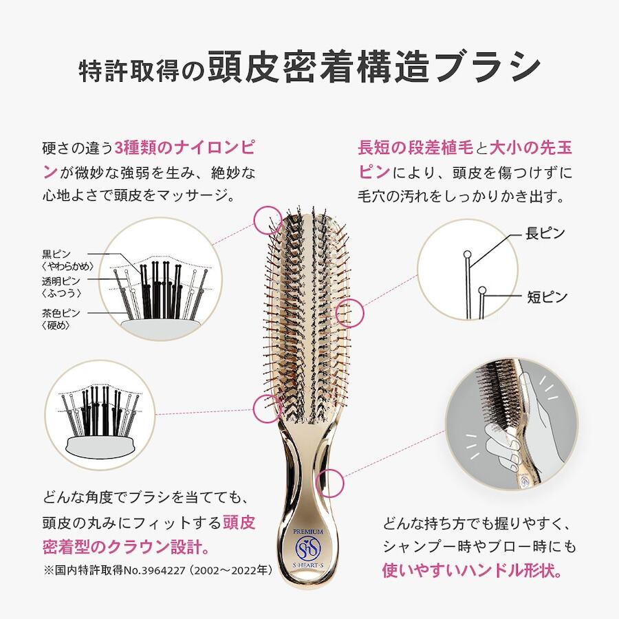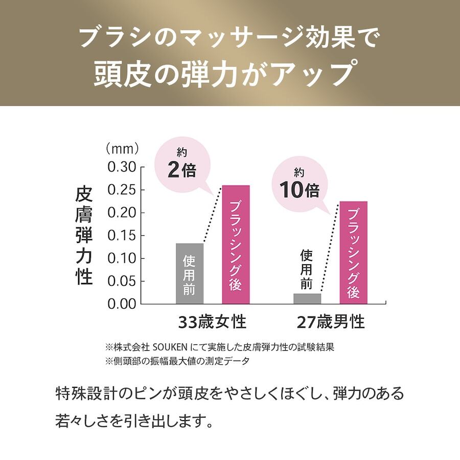 硬さの違う3種のピンが絶妙な強弱で頭皮を心地よくマッサージし、